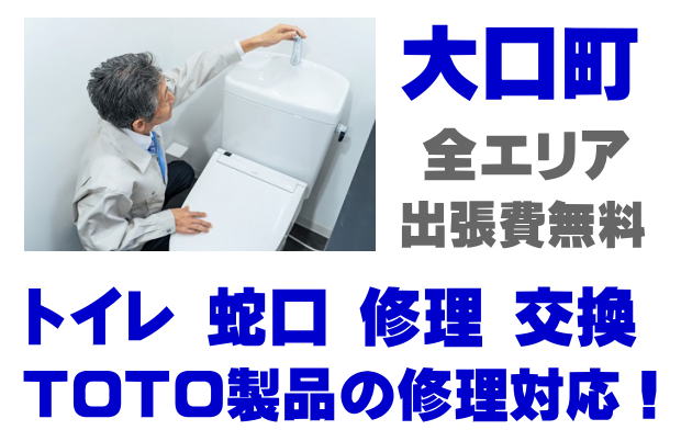 大口町でTOTO製品の修理業者をお探しなら当社までお気軽にお問い合わせください。トイレ便器タンクの故障、便座の修理、蛇口やシャワーの水漏れなどTOTO製品に関するトラブルなら何でもご相談ください。